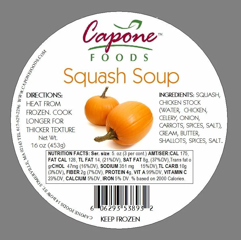 Fresh chunks of squash are slowly baked with shallots, ginger and unsalted butter. The concentrated mixture is pureed AND mixed with our home made chicken stock and cream. Absolutely delicious.Â