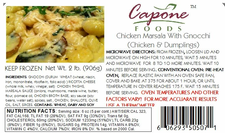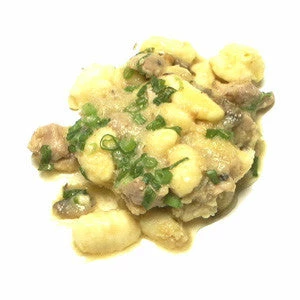 Fresh tender chicken cooked in olive oil with shallots and spices. We then mix it with our cheese gnocchi in a light Marsala sauce and top it with green onions. Sprinkle with La chinata smoked paprika for added flavor and color.