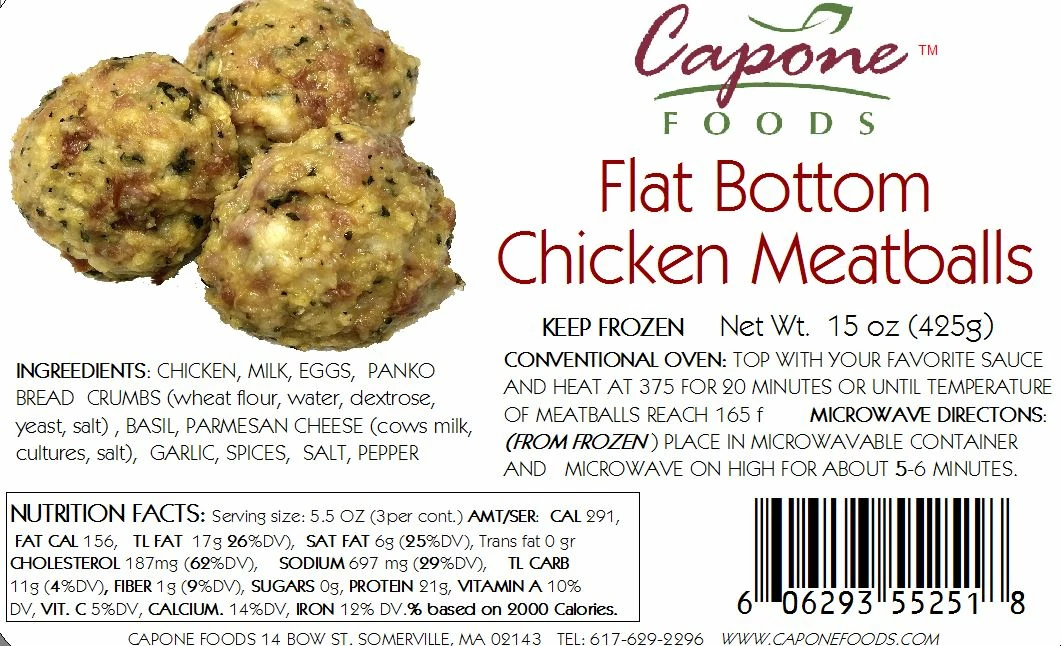 Capone Foods Entrées Flat Bottom Chicken Meatballs- Plain * STORE PICK UP ONLY