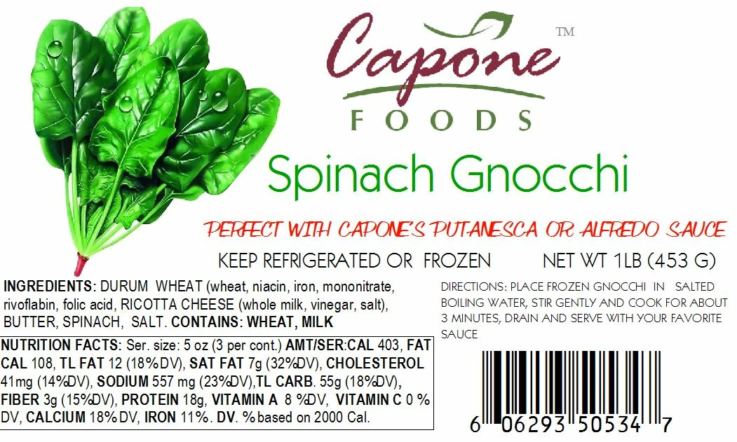 Durum wheat flour with spinach, ricotta cheese and spices formed into tiny pillows. Much lighter than potato gnocchi and a lot lower in carbohydrates. Top them with one of our tomato sauces and some Parmesan or Pecorino Romano cheeses. We bet you can’t stop with a single portion.Â