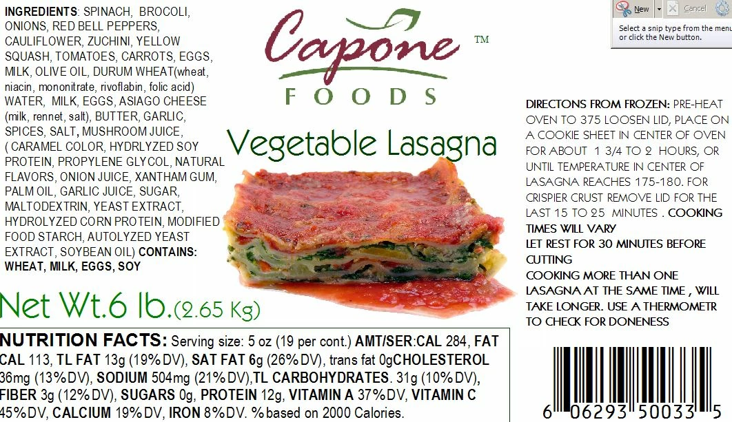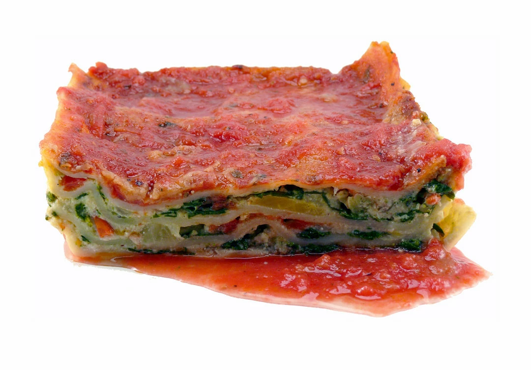 We begin with onions and red bell peppers sautĂ©ed in extra virgin olive oil until they are tender, sweet, and bursting with flavors. Then we add spinach, carrots, zucchini, broccoli and cauliflower and blend in a  mushroom bĂ©chamel sauce. For added flavor, the lasagna is topped with a thin layer of our Plum Tomato and Basil sauce, Asiago cheese and bread crumbs. This very flavorful lasagna can be prepared in a microwave or conventional oven. Remember, as with all our prepared entrees, allow to rest and settle for 10 to 15 minutes before serving.Â