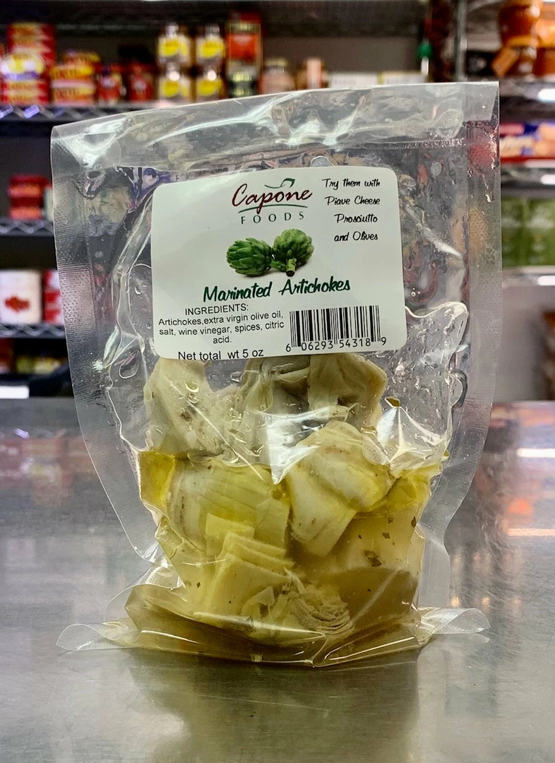 Marinated in a mixture of extra virgin olive oil, wine vinegar and spices.Â