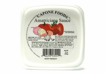 This is a light tomato sauce with a complex flavor. Derived from the slow cooking of tomato filets, imported prosciutto, pancetta, red onions, shallots, fresh garlic, fresh parsley, wine and spices in extra virgin olive oil. Perfect match for mushroom ravioli or black pepper pasta.