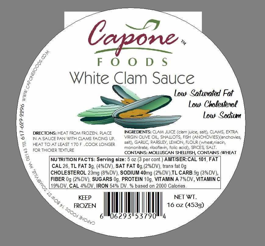 Chunks of clams and thickened clam juice with fresh garlic and parsley. Further enhanced with anchovies and lemon juice. Serve it over lemon or saffron pasta. Also great looking over black squid ink pasta.