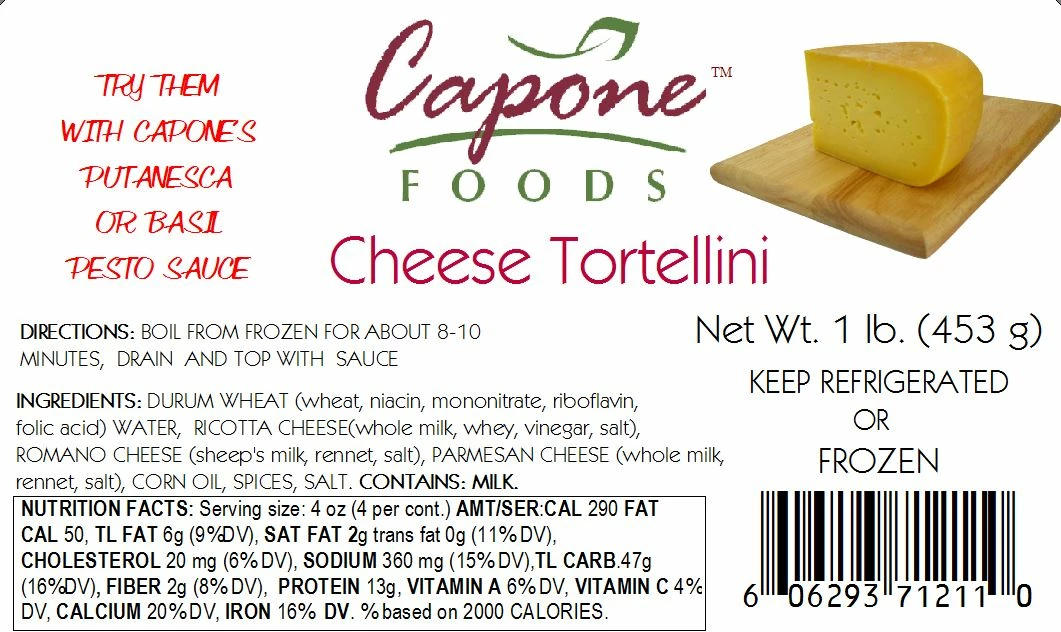 Filled with a mixture of Ricotta and Pecorino Romano cheeses, and can be topped with just about any sauce we make for a simple, easy to prepare meal. Kids love them!