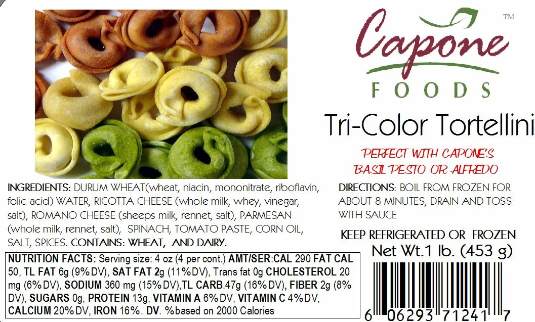 Tomato, spinach and pasta make for a colorful and tasty combination. They are filled with a mixture of Ricotta and Pecorino Romano cheeses and can be topped with just about any sauce we make for a simple, easy to prepare meal. Kids love them!