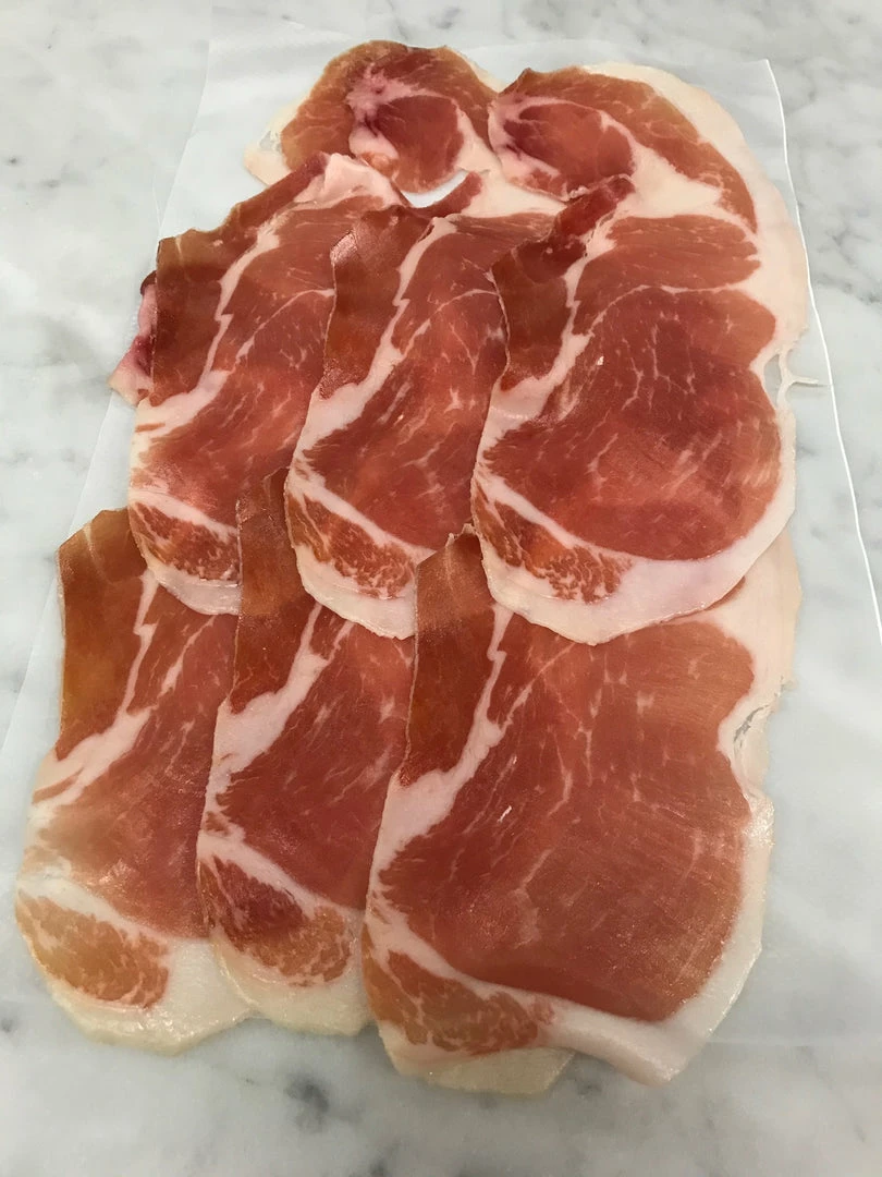 *PERISHABLE* From the Parma province in Piedmont, Italy. Mild sweet tasting, great in sandwiches and antipasto platters. Goes very well with buffalo milk mozzarella, sun-dried tomatoes, sweet vinegar peppers and marinated artichokes. In Italy it is often served with ripe figs or succulent cantaloupe melons and very thin bread sticks. Try it with ripe pears, Gorgonzola cheese and a rich balsamic vinegar.